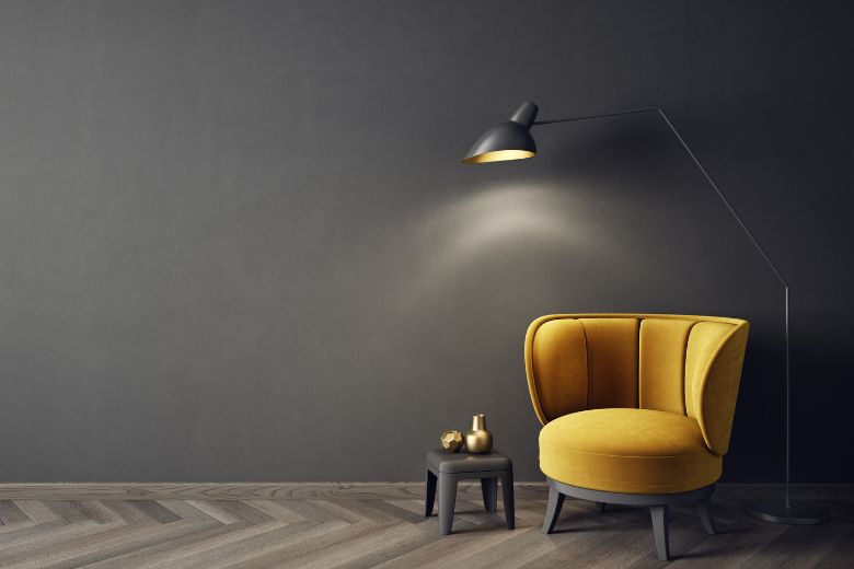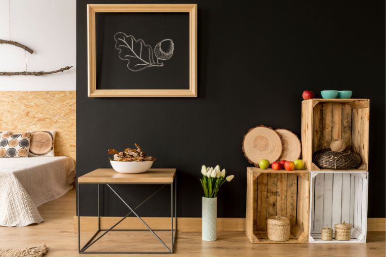 Outra dica é usar texturas e materiais que criem contraste com a cor escura do ambiente. O importante é que o ambiente fique harmonioso e equilibrado.