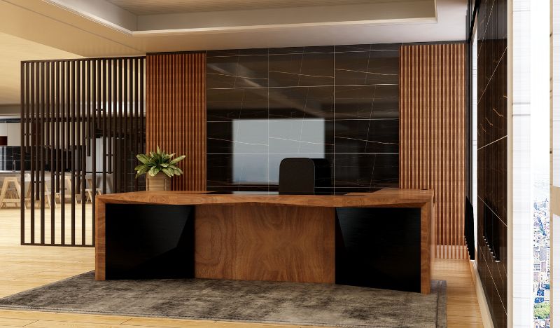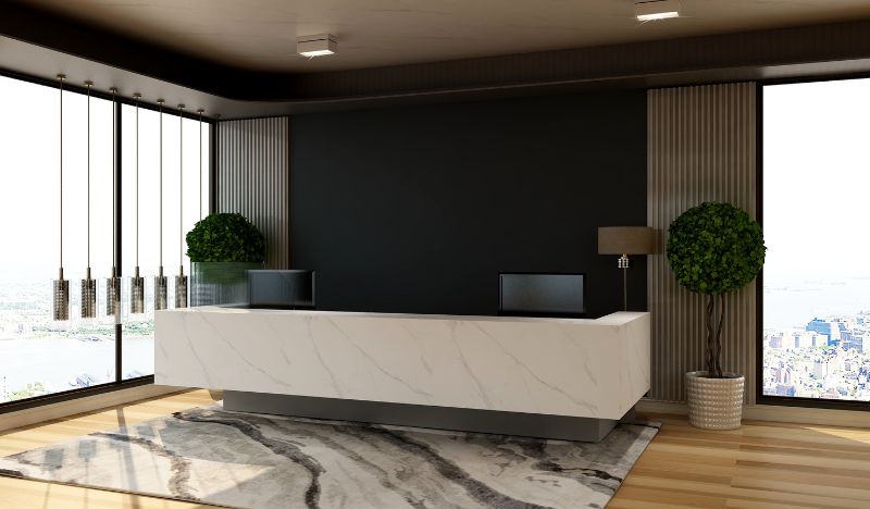 A recepção é o cartão de visitas do seu escritório. Torne-a acolhedora e convidativa com o uso de tapetes macios, papel de parede elegante e móveis confortáveis para criar uma primeira impressão positiva nos visitantes.